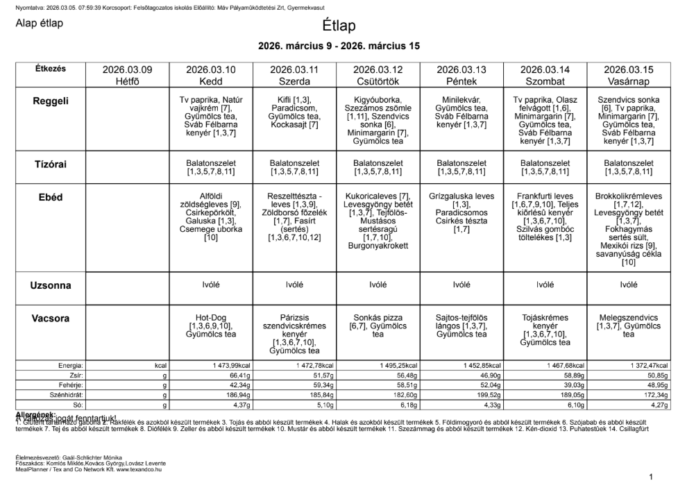 Étlap: 2026.03.09. – 03.15.