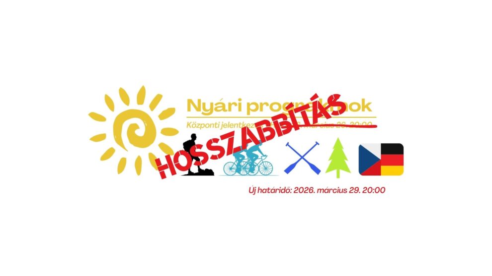 A mai nappal indul el a jelentkezés a nyári programokra, melyhez a kérdőívet ide kattintva érhetitek el. Fontos, hogy szüleitekkel közösen töltsétek ki a jelentkezési űrlapot.