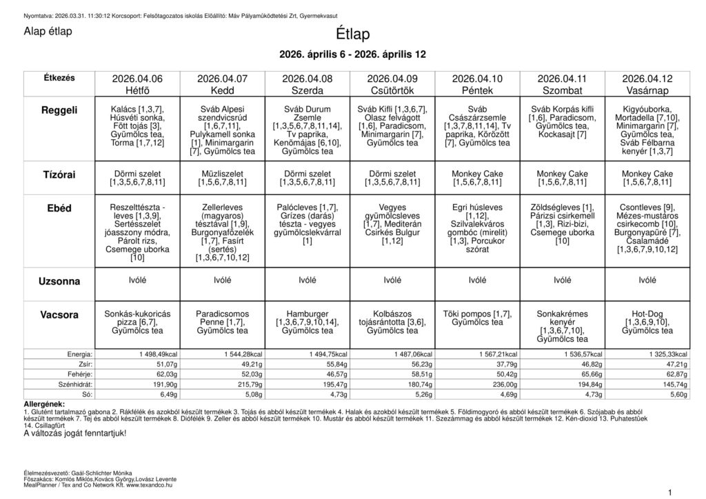 Étlap: 2026.04.06. – 04.12.