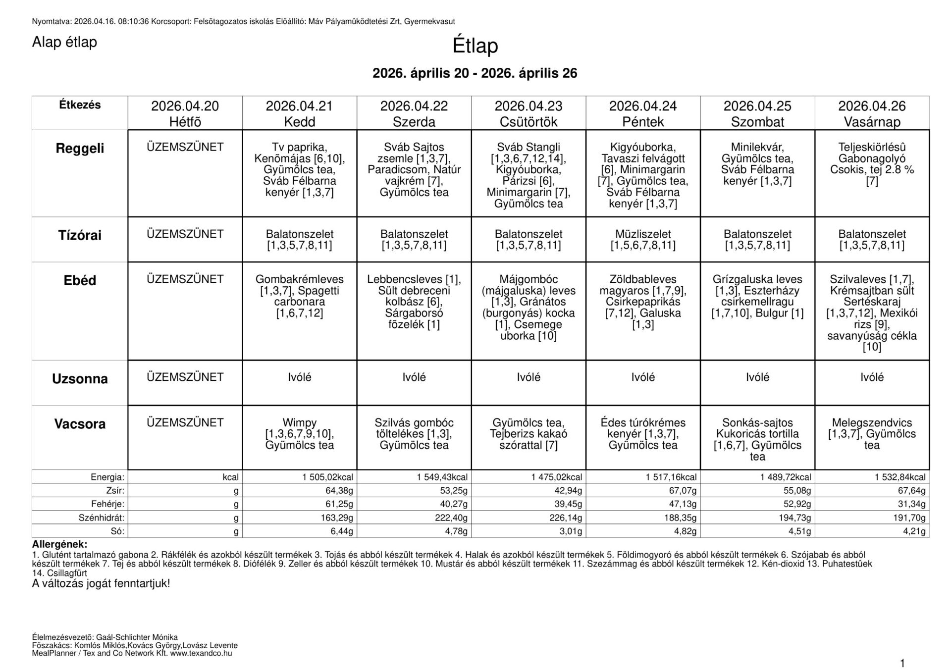 Étlap: 2026.04.20. – 04.26.